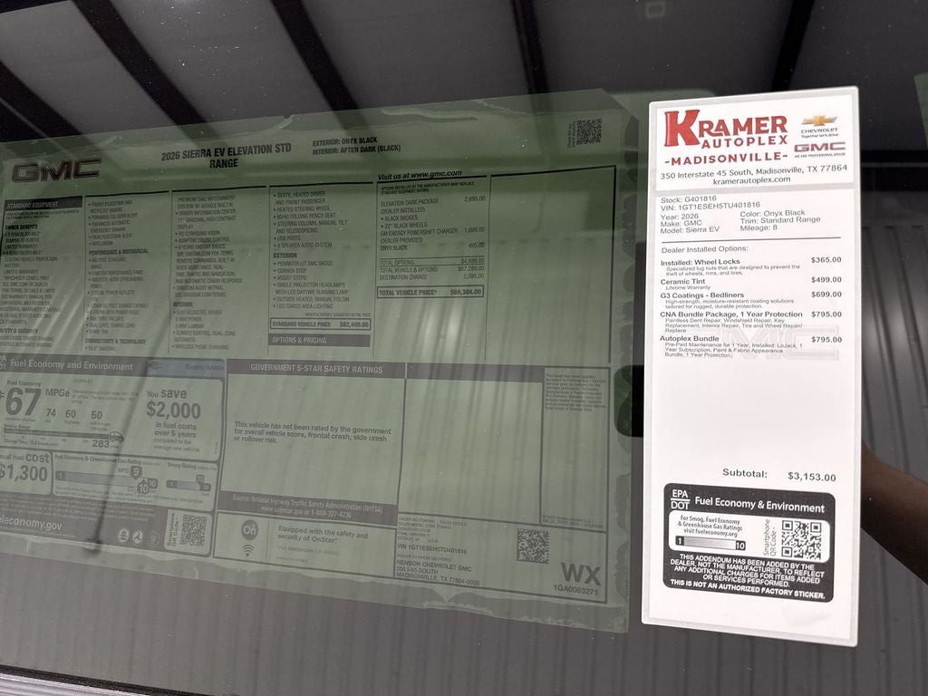 2026 GMC Sierra EV Standard Range Elevation — AWD, Electric Motor Electric — located in Madisonville, TX. This GMC Sierra EV combines rugged capability with cutting-edge electric performance, and it's available here at the best price in the area. Enjoy confident driving with Adaptive Cruise Control and Lane Keep Assist for stress-free highway travel, plus Lane Departure Warning to help keep you centered in your lane. A Back-Up Camera enhances visibility and parking safety, while the Heated Steering Wheel adds comfort during colder mornings. The Standard Range Elevation trim delivers refined styling, advanced tech, and the instant torque of an electric motor for brisk acceleration and smooth, quiet operation. AWD provides traction and control whether you're navigating wet roads or light off-road routes around Madisonville. Inside, modern amenities and driver-focused features create a comfortable, connected cabin for daily commutes and longer trips alike. This GMC Sierra EV is competitively priced to move quickly — we're offering the best price in the region and a transparent buying experience. Schedule a test drive in Madisonville, TX, to feel the electric difference and experience the smart safety features firsthand. Contact us today for availability, financing options, and to lock in this exceptional deal on a 2026 GMC Sierra EV Standard Range Elevation with AWD.