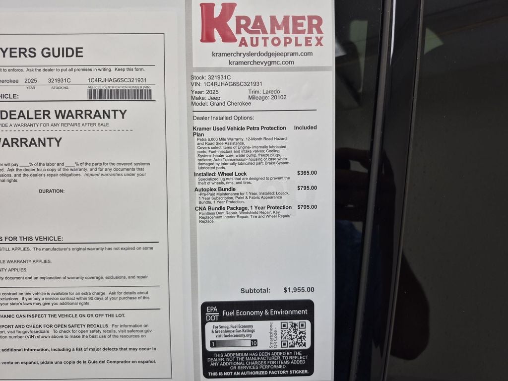 2025 Jeep Grand Cherokee Altitude X — 3.6L V6, 4WD, 20,102 miles — Livingston, TX This 2025 Jeep Grand Cherokee Altitude X pairs confident capability with refined comfort. Powered by a 3.6L V6 gasoline engine and advanced 4WD, it delivers smooth highway cruising and composed handling on rougher terrain. With just 20,102 miles, this low-mileage SUV is ready for many more miles of adventure and daily driving. Features highlight convenience and safety: Adaptive Cruise Control maintains a steady pace and safe following distance on long trips, while Automatic Climate Control keeps cabin temperatures comfortable for all occupants. The Back-Up Camera enhances rear visibility for easier parking and tight maneuvers. Premium Leather Seats add a touch of luxury and durability for driver and passengers. This vehicle comes with a CARFAX 1-Owner history, offering added confidence in its maintenance and care. Located in Livingston, TX, this Jeep Grand Cherokee Altitude X is competitively priced to be the best value in the market, combining trusted Jeep capability with upscale amenities and low mileage. Whether you need a reliable daily commuter or a weekend trail companion, this SUV delivers. Contact us to schedule a test drive or request the full CARFAX report and see why this Jeep Grand Cherokee is an outstanding choice for buyers seeking performance, comfort, and value.