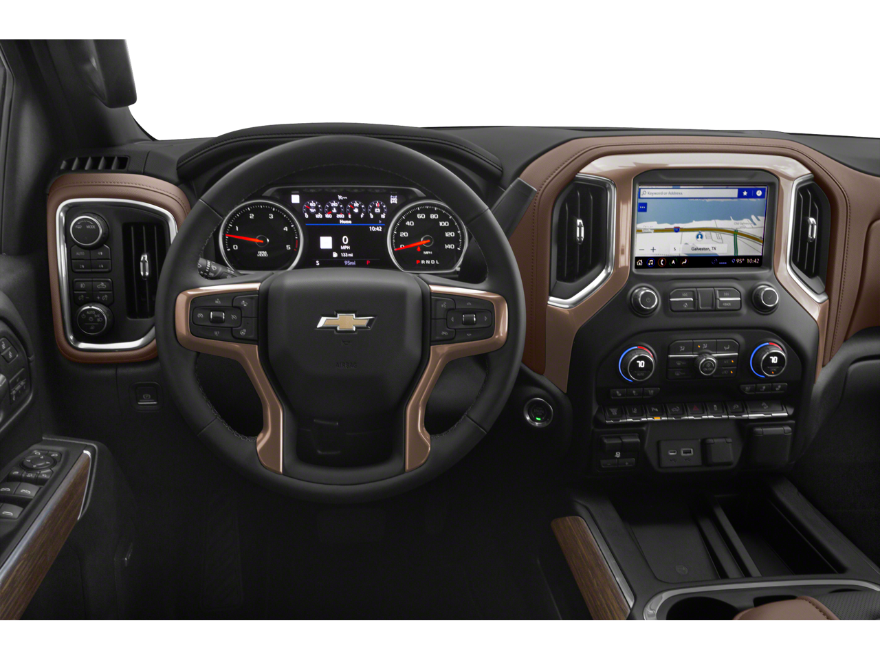 Interior Convenience Package: Console Insert Organizer Tray; 1st and 2nd Row All-Weather Floor Liners; Underseat Storage. Safety Package II: Forward Collision Alert; Following Distance Indicator; Automatic Emergency Braking; Safety Alert Seat; IntelliBeam Automatic High Beam On/off; Lane Departure Warning. Technology Package: HD Surround Vision with 2 Trailer View Camera Provisions; 15" Diagonal Multicolor Head-Up Display; Bed View Camera; Rear Camera Mirror. High Country Deluxe. Preferred Equipment Group 3LZ: Driver Memory; Perforated Leather-Appointed Seat Trim; SiriusXM with 360L; Power Sliding Rear Window with Defogger; Ultrasonic Front and Rear Park Assist; Electric Rear-Window Defogger; Unauthorized Entry Theft-Deterrent System; Heated Steering Wheel; 120-Volt Instrument Panel Power Outlet; Heated Driver and Front Outboard Passenger Seating; Wireless Charging; Front Bucket Seats with Center Console; Color-Keyed Carpeting Floor Covering; OnStar and Chevrolet Connected Services Capable; 8" Diagonal Multicolor Digital Display DIC; Heated 2