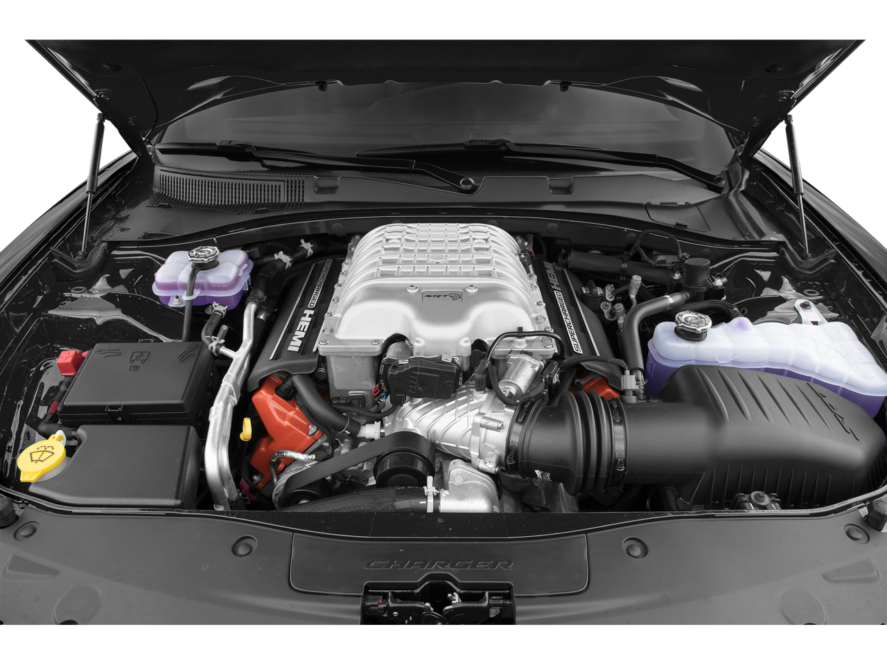 Quick Order Package 2BZ SRT Hellcat Redeye: SRT Power Chiller; 220 MPH Primary Speedometer; Redeye I/P Badge; Redeye Fender Badges; Satin Black Charger Decklid Badge; Satin Black Dodge Tail Lamp Badge; Redeye Decklid Badge; Redeye Grille Badge; 20" X 11" Carbon Black Lightweight Wheels. Alcantara Interior Package: Alcantara Steering Wheel-Red LED; Alcantara/Laguna Seats with Logo. Harman/kardon Audio Group: 19 Harman/kardon GreenEdge Speakers; Harman/kardon GreenEdge Amp; Surround Sound. Gas Guzzler Tax. Demonic Red Seat Belts. **Equipment listed is based on original vehicle build and subject to change. Please confirm the accuracy of the included equipment by calling the dealer prior to purchase.**