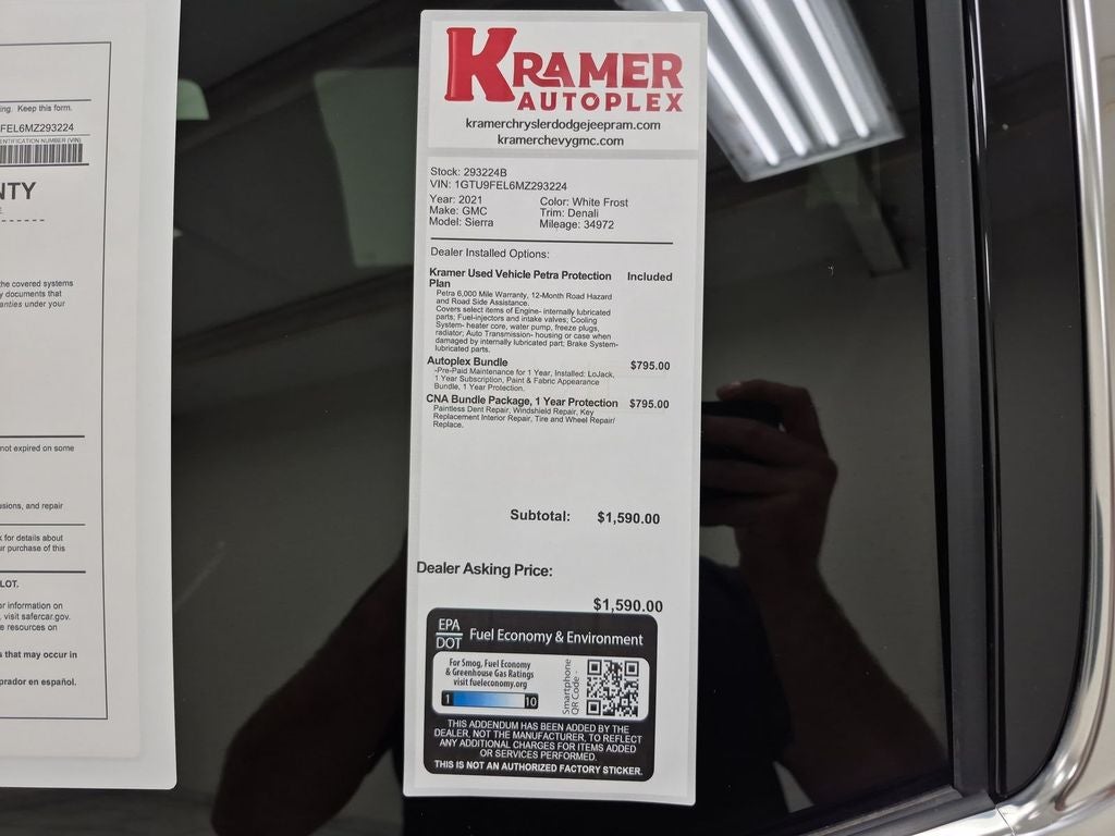 This unit features a high end BOSE stereo system. This vehicle comes equipped with Android Auto for seamless smartphone integration on the road. The vehicle has a clean CARFAX vehicle history report. Good News! This certified CARFAX 1-owner vehicle has only had one owner before you. The steering wheel audio controls on this GMC Sierra keep the volume and station within easy reach. The leather seats in this GMC Sierra are a must for buyers looking for comfort, durability, and style. See what's behind you with the back up camera on this GMC Sierra. The installed navigation system will keep you on the right path. This GMC Sierra's Lane Departure Warning helps keep you in your lane. Start this GMC Sierra from inside with remote start. Bluetooth® technology is built into this 2021 GMC Sierra 1500, keeping your hands on the steering wheel and your focus on the road. Keep your hands warm all winter with a heated steering wheel in the vehicle .