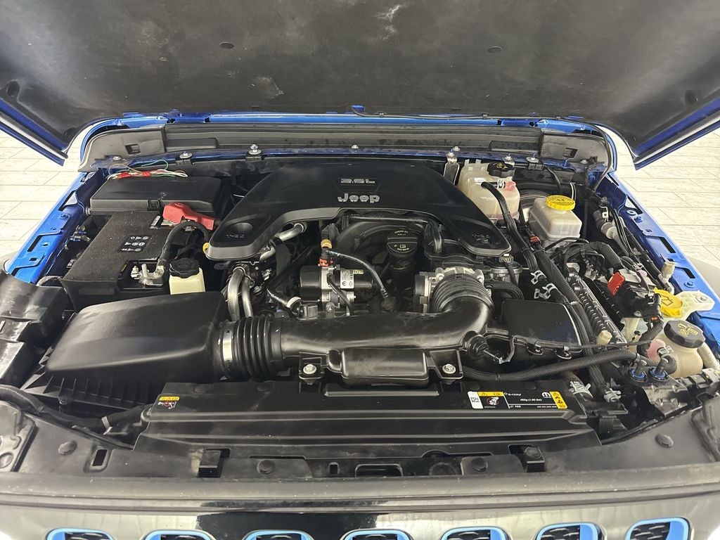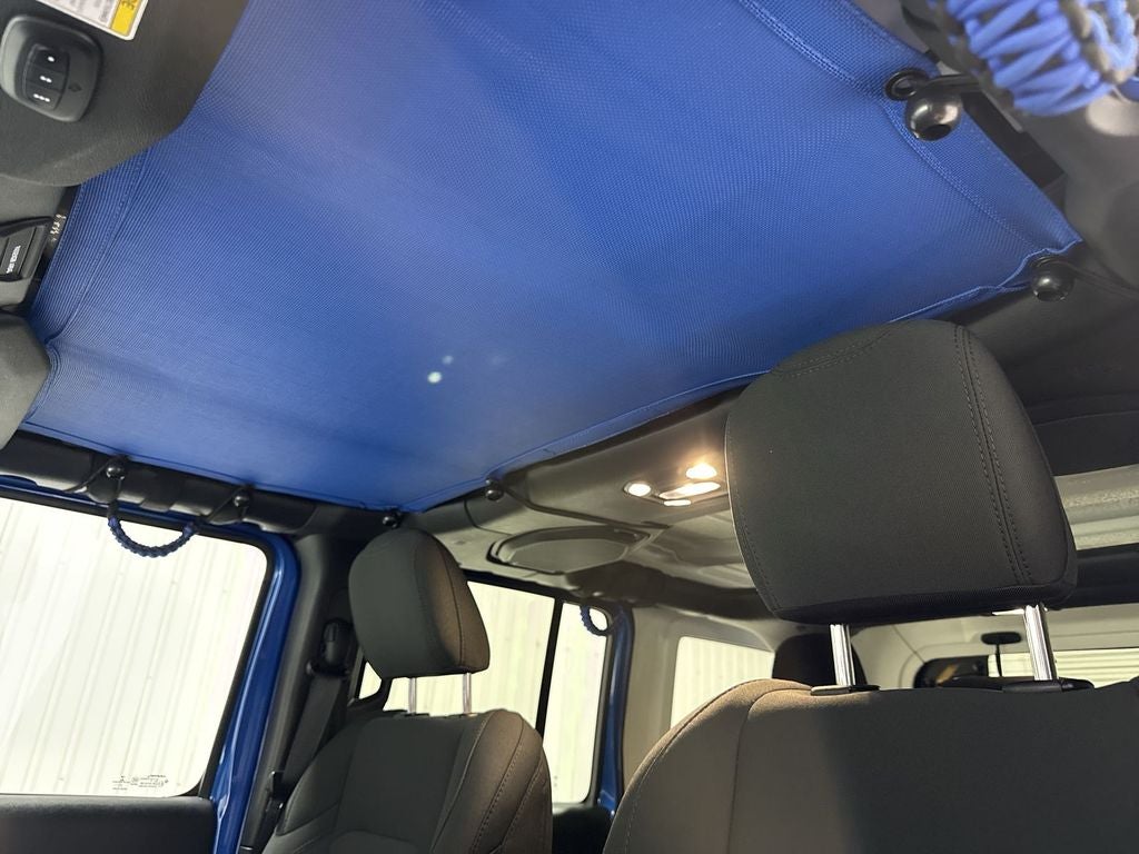 Convenience Group: Remote Start System; Universal Garage Door Opener. Quick Order Package 25W Willys (disc): Willys; Mold in Color Bumper with Gloss Black; Speed Sensitive Power Locks; Automatic Headlamps; Leather Wrapped Steering Wheel; Deep Tint Sunscreen Windows; Black Trail Rated Badge; 4-Wheel Drive Swing Gate Decal; Black Grille; MOPAR All-Weather Floor Mats; Willys Hood Decal; Rock Protection Sill Rails; LT255/75R17C Tires; Front 1-Touch Down Power Windows; Anti-Spin Differential Rear Axle; Power Heated Mirrors; Wrangler Decal; Matte Black Jeep Badge; Security Alarm; 17" X 7.5" Moab Black Aluminum Wheels; Remote Keyless Entry; Sun Visors with Illuminated Vanity Mirrors. LED Headlamp and Fog Lamp Group: Front LED Fog Lamps; LED Premium Reflector Headlamps. Quick Order Package 23W Willys: Willys; Mold in Color Bumper with Gloss Black; Speed Sensitive Power Locks; Automatic Headlamps; Leather Wrapped Steering Wheel; Deep Tint Sunscreen Windows; Black Trail Rated Badge; 4-Wheel Drive Swing Gate Decal; Black Grille; MOPAR All-Weather Floor Mats; Willys Hood Decal; Rock Protection Sill Rails; LT255/75R17C Tires; Front 1-Touch Down Power Windows; Anti-Spin Differential Rear Axle; Power Heated Mirrors; Wrangler Decal; Matte Black Jeep Badge; Security Alarm; 17" X 7.5" Moab Black Aluminum Wheels; Remote Keyless Entry; Sun Visors with Illuminated Vanity Mirrors. Black 3-Piece Hard Top. Hydro Blue Pearlcoat. Hydro Blue Pearlcoat. MOPAR All-Weather Floor Mats. **Equipment listed is based on original vehicle build and subject to change. Please confirm the accuracy of the included equipment by calling the dealer prior to purchase.**