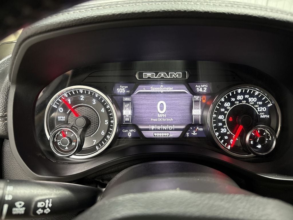 The leather seats in this Ram 1500 are a must for buyers looking for comfort, durability, and style. The vehicle features a hands-free Bluetooth® phone system. Never get into a cold vehicle again with the remote start feature on this unit. It offers Automatic Climate Control for personalized comfort. Good News! This certified CARFAX 1-owner vehicle has only had one owner before you. See what's behind you with the back up camera on it. This unit offers Android Auto for seamless smartphone integration. Our dealership has already run the CARFAX report and it is clean. A clean CARFAX is a great asset for resale value in the future. Apple CarPlay: Seamless smartphone integration for this Ram 1500 - stay connected and entertained on the go! This vehicle's Forward Collision Warning feature alerts drivers to potential front-end collisions. The vehicle is pure luxury with a heated steering wheel. When you encounter slick or muddy roads, you can engage the four wheel drive on this 2021 Ram 1500 and drive with confidence.