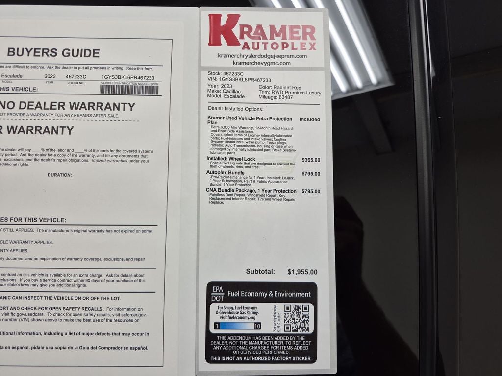You'll never again be lost in a crowded city or a country region with the navigation system on this model. Apple CarPlay: Seamless smartphone integration for the Cadillac Escalade - stay connected and entertained on the go! This 2023 Cadillac Escalade offers Android Auto for seamless smartphone integration. This model has auto-adjust speed for safe following. Our dealership has already run the CARFAX report and it is clean. A clean CARFAX is a great asset for resale value in the future. Start this 1/2 ton suv from inside with remote start. The Cadillac Escalade's Lane Departure Warning keeps you safe by alerting you when you drift from your lane. Lane Keep Assist in it helps maintain safe driving by gently steering to stay within the lane. Bluetooth® technology is built into this 2023 Cadillac Escalade , keeping your hands on the steering wheel and your focus on the road. Protect this unit from unwanted accidents with a cutting edge backup camera system.