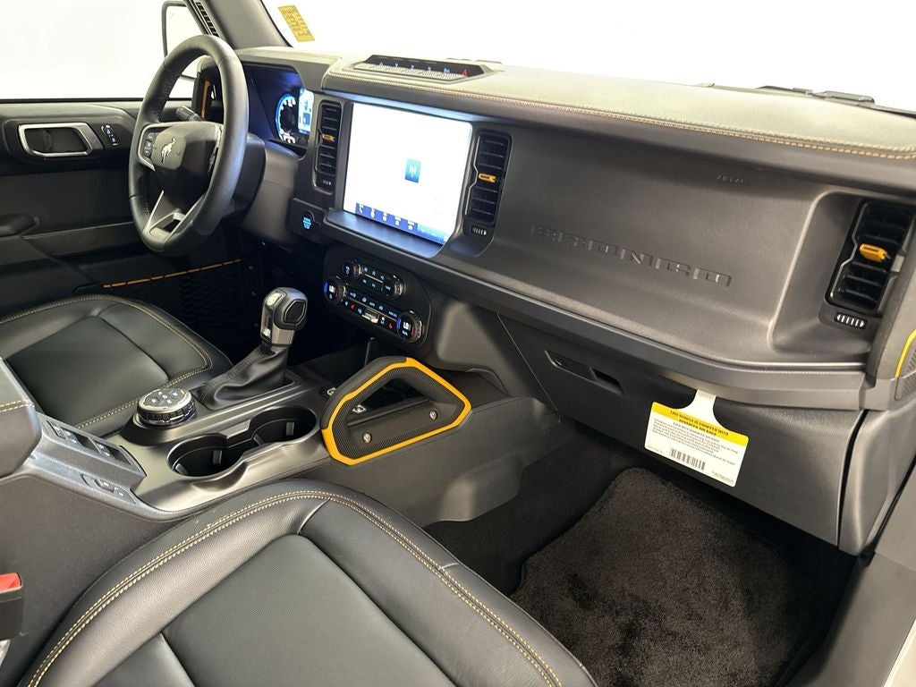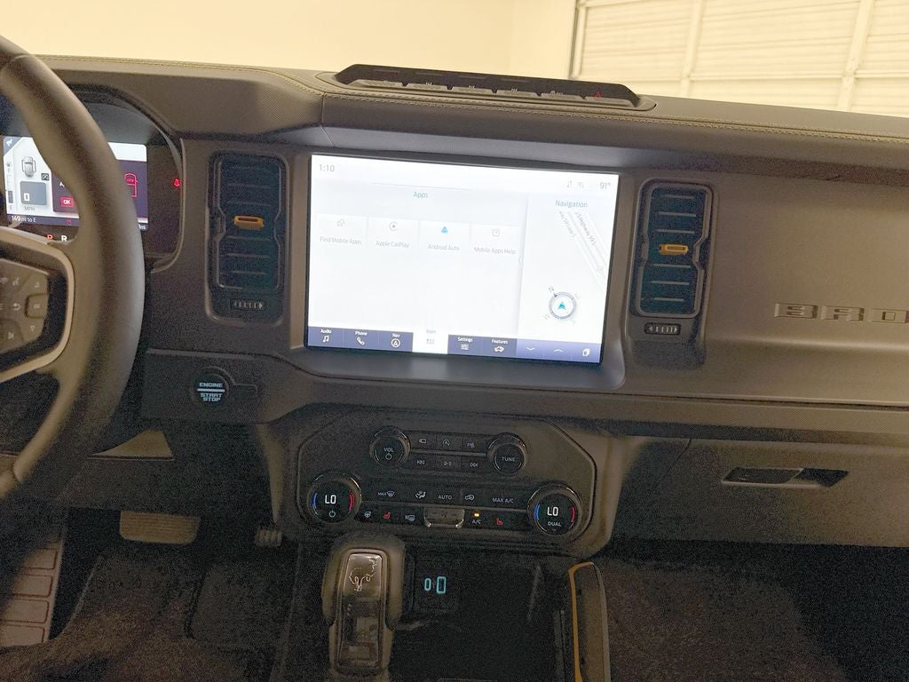It is pure luxury with a heated steering wheel. Bluetooth® technology is built into this model, keeping your hands on the steering wheel and your focus on the road. Never get into a cold vehicle again with the remote start feature on the vehicle. This model warns of approaching vehicles with Cross-Traffic Alert. Our dealership has already run the CARFAX report and it is clean. A clean CARFAX is a great asset for resale value in the future. The state of the art park assist system will guide you easily into any spot. An off-road package is installed on this 2024 Ford Bronco so you are ready for your four-wheeling best. The leather seats in this Ford Bronco are a must for buyers looking for comfort, durability, and style. This model offers Android Auto for seamless smartphone integration. This unit keeps you comfortable with Auto Climate. The Ford Bronco offers Apple CarPlay for seamless connectivity.