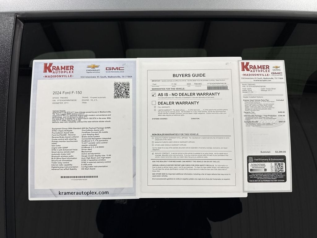 Ready to tackle work and weekend adventures, this 2024 Ford F-150 STX in Madisonville, TX delivers capability, comfort, and value. With only 9,711 miles and a CARFAX Clean Report, this low-mileage Ford F-150 pairs a proven 2.7L V6 gasoline engine with smooth RWD performance — ideal for drivers who want dependable power without excess miles. This STX is equipped for modern driving: built-in Navigation and Android Auto keep your routes and apps seamless, while the Back-Up Camera and Rear Parking Sensors make parking and hitching safer and easier.